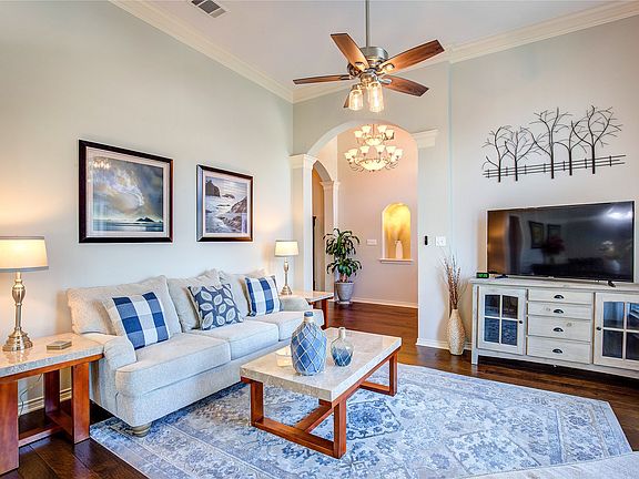 Stunning One-Story Retreat in Desirable Fox Chase! Welcome to this 4-bedroom, 3-bath, 2.5-car garage masterpiece, perfectly situated in the highly sought-after Fox Chase neighborhood—just minutes from The Harbor, the entertainment district, schools, shopping, dining, and convenient access to I-30. From the moment you step inside, you’ll be captivated by hand-scraped hardwood floors, intricate crown molding, and 18-foot ceilings in the foyer with multi-tier lighting that sets the tone for the home’s elegance. The formal living room boasts soaring 15-foot ceilings, while the formal dining room impresses with 12-foot ceilings and granite in all wet areas. The chef’s kitchen is truly the heart of this home, featuring induction cooking, granite countertops, under-cabinet lighting, cabinetry galore, and a large walk-in pantry with a designer glass door. An open-concept floor plan flows seamlessly into the spacious 19x19 family room, where views of the backyard oasis create the perfect blend of indoor and outdoor living.