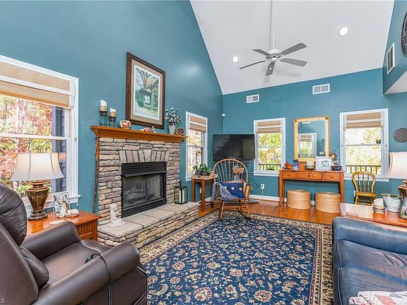 Tucked away in the peaceful community of Orchard Mountain, this beautiful mountain home sits on a private 5.72 acre wooded lot, offering a perfect blend of tranquility and comfort. With three levels, each featuring a full bathroom, this home is ideal for full-time living or a relaxing weekend escape. The living room boasts a vaulted ceiling and a cozy fireplace for a warm and inviting space perfect for cold fall evenings. Enjoy the serene surroundings and wooded/mountain views from the screened porch or covered porch. The property also features a detached garage and two home offices, making it the ultimate work-from-home retreat. Whether you're seeking a peaceful getaway or a serene place to live and work, this mountain home offers the perfect balance of nature, comfort, and convenience. Neighborhood Amenities include: pool, clubhouse, tennis, basketball, walking trails, and ponds.
