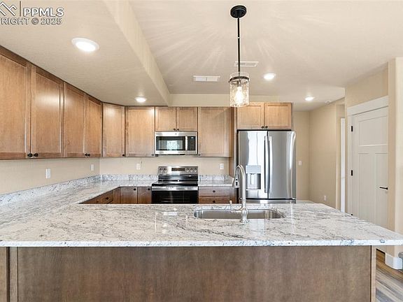 NEW CONSTRUCTION IN PALMER LAKE! This NEW home has all of the Premium Upgrades included from stylish finishes to the 0.19 corner cul-de-sac lot with Front Range views. The kitchen is outfitted with hardwood cabinetry, granite countertops, and ALL appliances. You don't have to pay extra for stylish finishes such as LVP flooring, wider baseboards, matte black hardware and lighting, tiled showers, ceiling fans and custom closets - its all included! The main level features an open concept kitchen & living room, powder room, and an oversized (26'x13') & finished one-car garage. The covered front porch wraps around from the front door to the dining room, offering plenty of outdoor living & entertaining space. Adding to the privacy of this almost quarter-acre corner lot is the dedicated drainage easement to the south side of the lot. The upper level hosts all three bedrooms including a primary suite with attached bathroom, walk-in closet, and private balcony with beautiful Front Range views. The laundry room is also conveniently located on the upper level. A full bathroom with door separating the sink/vanity and two secondary bedrooms round out the upper level. One of the secondary bedrooms has its own private door to the backyard, providing a peaceful place to spend time in nature without having to leave your home. This brand new home includes a stone retaining wall to the back and grass starting in the front/side yards, providing some landscaping and added curb appeal. The board & batten exterior with stucco & stone accents provide wonderful and timeless curb appeal. Elephant Rock Acres is an area of both new and existing homes, carefully crafted and developed by the Tri-Lakes local, family owned & operated builder, Ehrhardt Construction. No HOA, metro district, or covenants! This is one of the last lots in this wonderful little neighborhood, don't miss your chance to make Elephant Rock Acres your home! QUICK CLOSE/POSSESSION POSSIBLE!