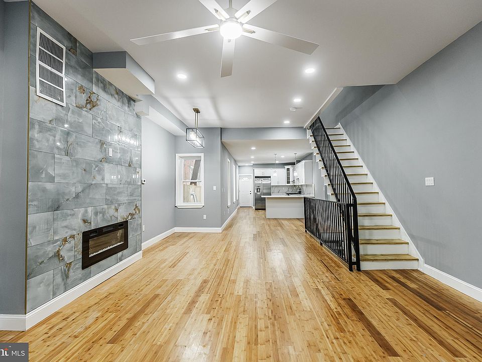 Experience luxury and peace of mind in this fully renovated 5-bedroom, 3.5-bath single-family home offering over 2,000 sq ft of elegant living space in the heart of Belmont. Step inside to an open and airy layout featuring gleaming hardwood floors, recessed lighting, and a striking electric fireplace wall with full-height designer tile. The gourmet kitchen is a showpiece with granite countertops, stainless steel appliances, gold-accent fixtures, pot filler, custom pendant lighting and a large peninsula ideal for entertaining. Every detail has been upgraded — 200-amp electrical system, central air, modular manifold plumbing, washer/dryer hookup, and custom iron railings. Upstairs, five spacious bedrooms and three full designer bathrooms showcase spa-like finishes, including floor-to-ceiling marble-style tile, hexagon accent niches, glass-enclosed showers, and brushed-gold fixtures. The finished basement adds bonus space for guests, a gym, or media room. Home has a new roof installed for worry free living for years to come and new energy efficient windows that will save you money on your utility bills. Outdoor highlights include a new concrete yard and front exterior for easy maintenance and a roof deck with skyline views — your private retreat above the city. Walk the neighborhood and you can see this home is surrounded by new construction development all around. Located less than 10 minutes from the Philadelphia Zoo. Nestled in close proximity of Fairmount Park, Drexel University, University of Pennsylvania, Center City, and major highways, this home offers unbeatable convenience. Buyer incentives and added value: 1-Year Home Warranty included for worry-free ownership Eligible for homebuyer down payment assistance programs Area home values continue to rise, making this a smart long-term investment Move-in ready and packed with every modern amenity — schedule your private tour today and fall in love with 826 N Preston Street!