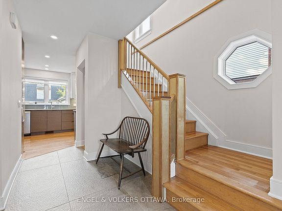 This tastefully updated family home in Alta Vista features elements of modern design without sacrificing comfort and day-to-day functionality. The main level has an inviting open-concept layout, starting with the foyer with large tile flooring, recessed lighting, and a stylish powder room. The expansive living room is highlighted by a full-height tiled fireplace, built-in shelving, and large windows that overlook the front yard. The adjoining dining area features a statement linear light fixture and rich hardwood flooring that flows throughout the level. The contemporary kitchen showcases two-tone cabinetry, quartz countertops, a waterfall peninsula with seating, and stainless steel appliances. At the rear, the sun-filled south-facing family room impresses with vaulted ceilings, multiple full-height windows, and sliding glass doors opening to the backyard, creating a wonderful space during all times of the day. Upstairs, the spacious primary bedroom features double closets and treetop views, while two additional bedrooms make for great children's or guest rooms. The 5-piece bathroom has a double vanity with quartz counters, wood cabinetry, geometric flooring, and a tub/shower combination. The finished lower level has a large recreation room with recessed lighting, a functional bedroom with an above-grade window, and a full bathroom with a glass shower and the laundry units. Outside, the private, low-maintenance backyard has an in-ground pool, stone patio, and mature trees offering privacy and shade. This property offers a family-friendly lifestyle with Billings Bridge, Lansdowne Park, and the Ottawa Hospital campuses nearby within just minutes. Evening strolls along these tree-lined streets await you!