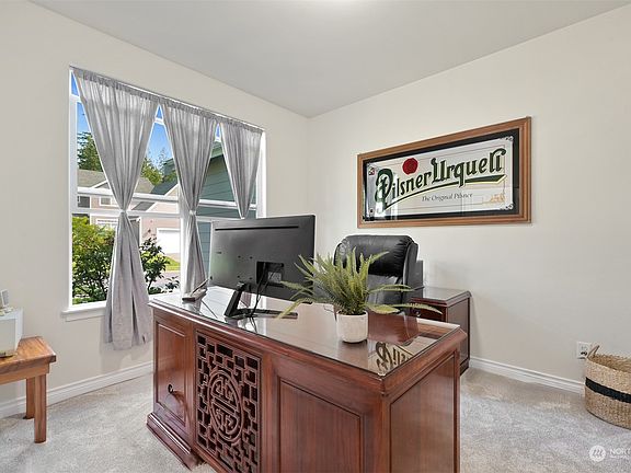 Impeccable 4 bedroom and 2.5 bath plus office South Hills residence situated on a tree lined, cul-de-sac street in this sought-after Neighborhood! Light-filled rooms with 9 ft ceilings and large windows that frame the Chuckanut mountain view. Extensive hardwood floors. Culinary kitchen with breakfast nook opens to the family room. Formal dining and living room with a gas fireplace. Main floor office off the entry i.e. 5th bedroom if needed. Spacious primary ensuite and 3 generous sized bedrooms sharing a 2nd full bathroom. South-facing and grassy, fully-fenced backyard with raised beds plus shed and playhouse - with all day sun. 3-car garage with pull down ladder. Amazing Southside schools. Lake Padden and Galbraith just a few blocks away.