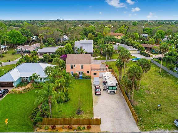 Check out this charming Key West style home in Rustic Acres with an ocean access community dock right across the street! You will not be disappointed as this home shows pride of ownership throughout the interior and exterior. It has 3 bedrooms plus a loft/ 2 baths/ a 1 car drive through garage with extra storage space. Kitchen cabinets have been updated w/ granite counter tops, wood flooring throughout the living area and carpet upstairs in the bedrooms. Home comes equipped with impact doors and windows throughout. The landscaping is tastefully done with fruit trees and exotic plants, beautiful arched high end privacy fence with a gate in the backyard. Great family home or vacation rental, boat/RV parking, and plenty of room for a pool. Dock and canal draft about 3 ft. of water. This home is located close to 95, minutes to downtown Stuart and less than a half mile to your nearest Publix.