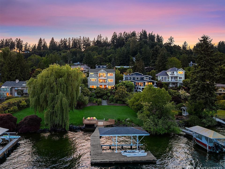 Experience superlative Northwest living in this sophisticated and joyous Mercer Island waterfront home. Delight in unobstructed stunning Mt. Rainier views from the private dock and airy and light five bedroom, five bath residence. This classic Cape Cod stunner offers soaring ceilings, hickory hardwood flooring throughout, a chef’s kitchen and three fireplaces. An unusually large, flat lawn and multiple entertaining decks invite seamless indoor-outdoor living for all to enjoy along with 69 feet of rare, low-bank shoreline, and a covered boat slip. Located in a sought-after enclave near the Mercer Island Beach Club, this home is both a private retreat and an entertainer’s dream.