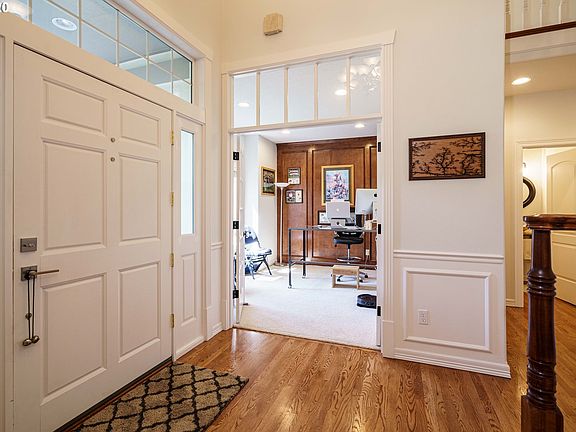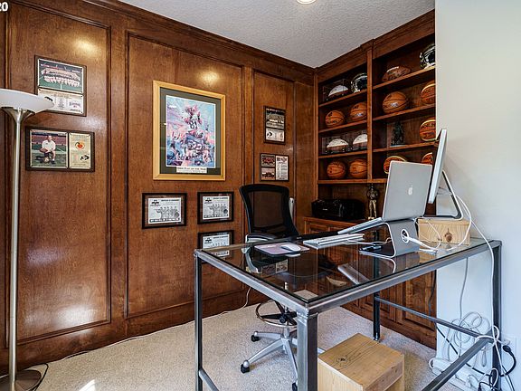 Cooper Mt Custom Home on quiet street. Quality features throughout, includes, Crown moldings, Hardwood Floors, Coffered ceilings, Slab granite counters, custom concrete island and cherry wood cabs. 2 fire places, custom master bathroom, Heated floors, New architecture roof, Furnace. 1000 sf custom deck backs to woods with professional landscape lighting around the home. Over 1500 sq.ft. of storage space/shop under the home.