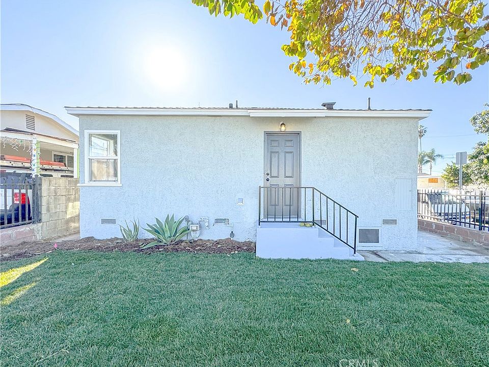 TWO SEPARATE UNITS! Come see this absolutely stunning fully remodeled single family residence consisting of a total of 3 bedrooms and 2 full bathrooms! In addition to the 2 bedroom, 1 bathroom MAIN HOUSE there is a very large ADU/GARAGE CONVERSION which is now a 1 bedroom, 1 full bathroom with a full living room and kitchen! Both units are extremely spacious and beautifully laid out! The total amount of square footage of this property is approximately 1,200 sq ft on a large 4,907 square foot lot! As you enter the house you will notice the gorgeous brand new laminate wood flooring throughout the entire property along brand new tile and vanities in each bathroom. Next you are immediately drawn to the fully remodeled kitchen! This spacious kitchen also features beautiful quartz countertops and brand new soft close shaker cabinets. Continuing to make your way through the home, you’ll discover each bedroom is very generous in size including the master suite and they all offer an ample amount of closet space. Upon entering the backyard you will find BRAND NEW SOD and IRRIGATION SYSTEM. This property is conveniently located near schools, shopping, parks and freeways, this one is definitely a MUST SEE! Priced to sell, it’s going to go quickly so schedule a tour today!