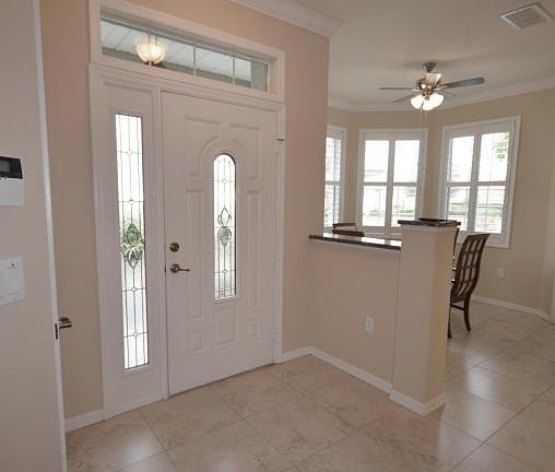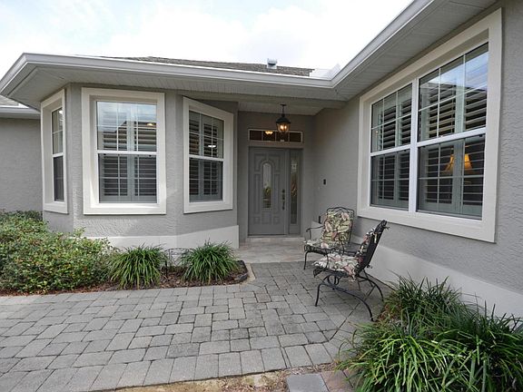 Custom upgrades make this home better than new and the CDD HAS BEEN PAID! This very nice Bonnybridge model home is located in the much sought after gated 55+ golf community of Candler Hills. Home features a new HVAC (2015), 9'4'' ceilings, crown molding throughout entire home, Plantation shutters throughout entire home, Cambria counters in kitchen, neutral tile in foyer, kitchen, cafe and baths, Solar tube in kitchen, engineered hardwood in grand room, and carpet in bedrooms, enclosed Lanai under roof, huge insulated Lanai in the back of the home, paver driveway and front walk, tiled front entry, professional landscaping, and MUCH MORE! Step in to the Foyer and you find the Cafe to your left and Kitchen forward and left. Natural light abounds from the bay windows in the Cafe