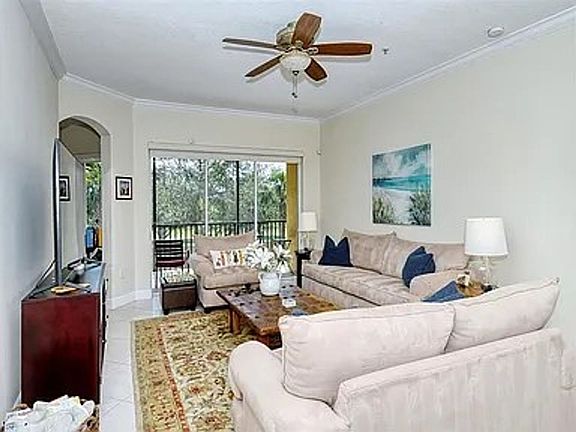 ** 3 MONTH MINIMUM - 9 MONTH MAXIMUM LEASE OPTIONS ** GORGEOUS TURNKEY FURNISHED CONDO LOCATED IN THE HIGHLY SOUGHT AFTER MIRMAR COMMUNITY AT LAKEWOOD RANCH COUNTRY CLUB! This beautifully furnished condo is located on the second floor. When you walk in you will love the large comfortable living room and bonus sitting room. It is the perfect place to host you family and friends. The fully stocked kitchen is a chefs dream with a gas stove, granite countertops, closet pantry and plenty of counter/cabinet space. The primary bedroom has a king sized bed, walk in closet and an en suite bathroom with a walk-in shower, garden tub, water closet and double vanity sinks. The two other guest bedrooms have queen sized beds. The guest bathroom features a tub and shower combination. The large screened - in lanai is the perfect place to sit back and enjoy your morning coffee. The home also features a 1 car garage. Miramar is a gated community and offers resort like amenities including a clubhouse, entertaining area with kitchen, fitness center and a heated community pool and spa. Miramar is a beautiful gated community situated along the Legacy Golf course in Lakewood Ranch, Florida as well as being located near UTC mall, shopping, grocery stores, coffee shops, I75, Sarasota/Bradenton airport, beaches and downtown Sarasota. No pets per the Association rules. ** The extra den space will be locked up as it is used as an owners closet! ** Call today for a private showing!