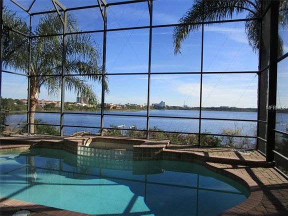 Your breath taking Lakefront home awaits, located in beautiful Mirabella Vizcaya, one of Orlando's most exclusive, lakefront, guard gated communities. This spaciously laid out home offers modern, Mediterranean Architecture and breath taking water views of Little Sand Lake. Sunrise and sunsets, along with theme park fireworks, are just some of many pleasures you will enjoy from the comfort of your private paradise. This dramatic, yet exquisite floor plan lends spectacular views from your custom built kitchen which offers 42' cabinets w/ raised panel refrigerator and dishwasher doors as well as granite counters. Breath taking views are also found in your breakfast area, family room, and up stairs Main Suite over looking your private pool and spa. Your Master Suite welcomes you to enjoy relaxing hours on your very own screened in walk out balcony. For the ultimate offering, you may decide to build your very own dock and house that fishing boat, jet ski or pontoon for water entertainment on Little Sand Lake. Your dream home awaits.