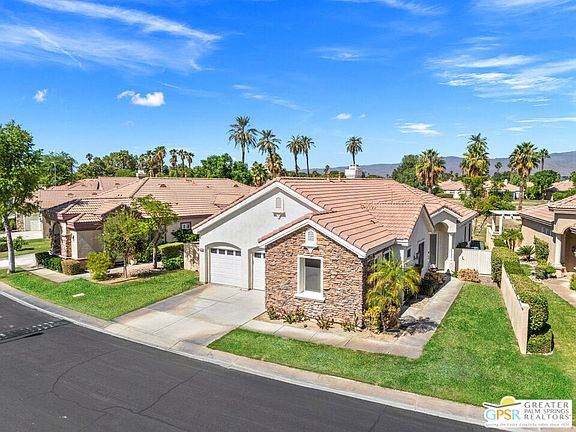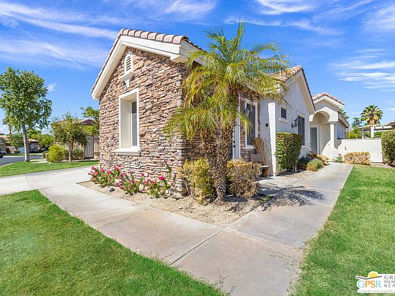 Wow! Front-row living on the fairway at Indian Palms Country Club! Beautifully FURNISHED and move-in ready, this 4-bedroom, 3-bath home with a CASITA in the mix showcases gorgeous updated finishes, designer tile work, and stylish wallpaper that elevate every space. Fee Land (you own it), LOW HOA fees, and SHORT-TERM RENTAL friendly flexibility make this an exceptional opportunity for full-time residents, seasonal owners, or investors alike. The open concept great room is anchored by a striking stone accented fireplace and flows seamlessly to the dining area and sleek kitchen with walk-in pantry and a generous island perfect for entertaining. The spacious primary suite offers a serene retreat with walk-in closet, soaking tub, double vanities, and separate shower. A detached one bedroom casita with its own bath and kitchenette adds versatility for guests, extended family, or income potential. Outdoor living is picture perfect with a wide covered patio overlooking the fairway, and both front and rear landscaping are maintained for you. Offered fully furnished with every detail dialed in, this home makes desert living easy and stylish from day one. Residents enjoy a revitalized 27 hole championship golf course, clubhouse, and restaurant. The privately owned Lifestyle Center, available by separate membership, features a saltwater pool and spa, tennis and pickleball courts, bocce ball, fitness center, yoga, and Pilates. A community rich in history as the valley's first public course, Indian Palms is just minutes from the Empire Polo Club, home to world class music and art festivals. Take the Matterport Virtual Tour to experience this home firsthand.