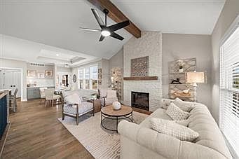 Welcome to the Luxury twin villas at Bristol Highlands in Lenexa by Lambie Homes! The Haven floor plan is sure to impress with 2 bedrooms (+ option for 3rd), pocket office, 2.5 bathrooms, and a finished lower level rec room spread across 1,892 sq. feet on lot 42R. On the main level you'll find a kitchen/dining combo, great room and pocket office that feature hardwoods throughout. A primary bedroom and bath, laundry, and mudroom are connected for convenience plus a half bath for guests. The Lower Level features a rec room, the 2nd bedroom, and a full bathroom with plenty of storage and space for a 3rd bedroom. The heart of this home is the kitchen with hardwood floors, soft-close drawers, pantry, a large island, stainless steel appliances with a gas cooktop, dishwasher, built-in microwave, and oven. Unwind in your primary suite which boasts a vaulted ceiling with beam, double doors to the bathroom, a quartz double vanity, tiled shower, and large walk-in closet that leads to the laundry room. Enjoy an impressive Great Room with vaulted ceilings and beam that center around a cozy fireplace with mantle. Private and covered patio which extends off the great room. You'll also enjoy an oversized 2-car garage, 96% efficiency furnace, pre-piped for radon mitigation, and includes a 1-year builders Home Warranty! Bristol Highlands is located within minutes of Lenexa City Center, Shawnee Mission park, trails, golf courses, and an array of restaurants. Our community will feature a clubhouse, pool, pickleball courts, etc. that will be optional for Villas owners. This home is currently under construction but can be completed in less than 30 days. Finished photos are from the model home at 8259 Aurora St. Twin Villa model is open daily 11 - 5 pm and Sunday 12 - 5 pm. Don't miss this BRAND NEW home at an incredible price!