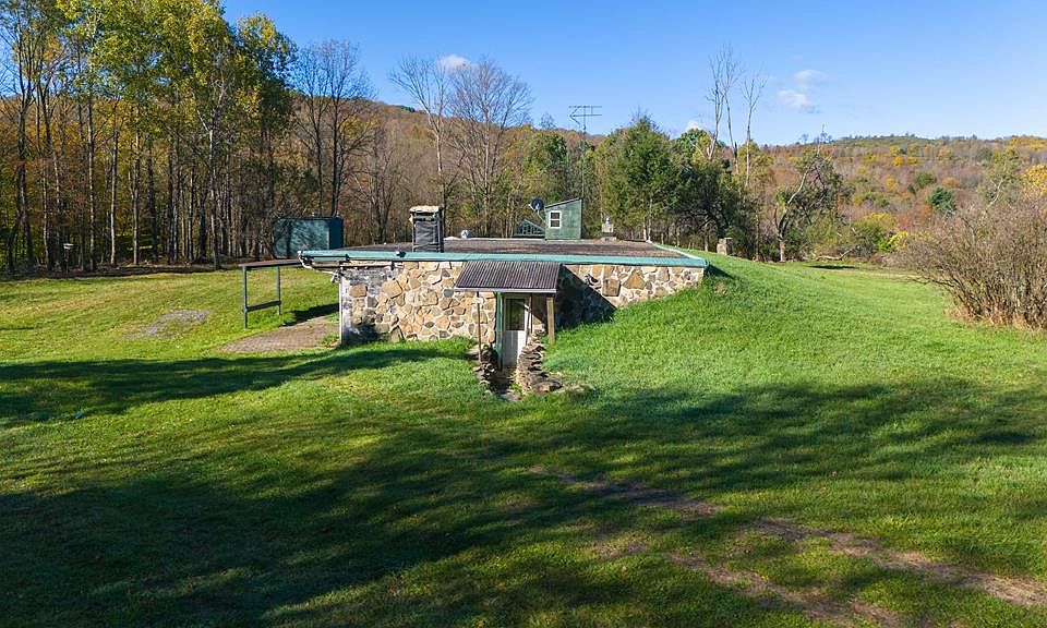 GILLETT, PA – A rare opportunity to own a true Earth-Home! This one-of-a-kind 3-bedroom, 1-bath residence offers 8 rooms of distinctive, energy-efficient living, including a storage rm, utility rm kithcen and living rm. Designed for comfort and sustainability, the masonry construction is built directly into the earth—keeping the home naturally cool in summer and warm in winter. Enjoy living on-grid or off-grid, with cozy heat provided by a coal stove. The 4-acre property features multiple outbuildings, a pond, and gently sloping terrain with views overlooking a nearby stream. Relax on the covered patio and take in the peaceful countryside surroundings. Located just 5 minutes from the New York State border, this home provides quick access to major highway systems while nestled in beautiful Wells Township—home to a lovely community park and part of the Troy Area School District. A multi-layered roof system topped with earth and gravel completes this remarkable, nature-integrated home.