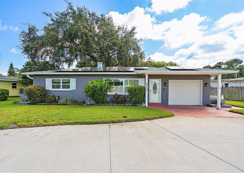One or more photo(s) has been virtually staged. PRICE ADJUSTMENT. NO FLOOD ZONE! NO EVACUATION ZONE! NO HOA! Looking for a Beautiful, Seminole home in the perfect location? Look no further. This home has it all! This 3 BR, 2 Ba, 1 Car Garage, Split Bedroom Home with circular driveway has a beautifully landscaped yard. The Kitchen and Bathrooms have updated Granite counter tops with plenty of storage. New flooring with Crown Molding and Baseboards. Updated Electric and newly added sprinkler system with 10 well system. Central A/C and Heat, 2019. Leaf Guards installed in all of the gutters. The backyard is a complete Florida Oasis with a newly poured concrete slab featuring a Gazebo with electric added and a Hot Tub for your enjoyment. Low, Low electric bills with Solar panels installed and (paid for). This Beautiful, Seminole Home is perfectly located for everything you may want or need. Just minutes to our Pristine Beaches, Seminole Square Mall, Restaurants, Grocery Stores, Seminole College and Seminole Recreation Center. A short walk or bicycle ride to The Pinellas Trail... Just to name a few. A few of the rooms have been Virtually Staged. Call to schedule an appointment today!