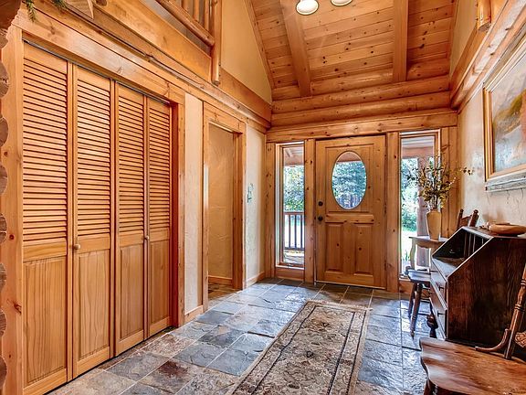 5 acres of complete bliss awaits you! This log home has so much character, space, warmth, and views to sooth your soul. Featuring a main floor master, w/a master bath that has 2 separate sinks, lavatories, and walk-in closets. two bedrooms w/private baths and loft upstairs, and a completely finished basement with a room to suit everyone. In the kitchen you will have slab granite counter tops, next-to-new appliances and a convection microwave! Have to have a fireplace?.. This fireplace has a 2-story rock hearth, it's amazing. The enormous 1200 sf garage is ample space for your vehicles, John Deere tractor and the workshop for all of the projects you can find to fill your spare time with. If that's not enough, there's an attached garage that is perfect for an indoor workshop or storage. Come home and relax on one of the many deck areas that surround this home on 3 sides and enjoy the wildlife that makes this home a true wilderness home. This is it, welcome home!