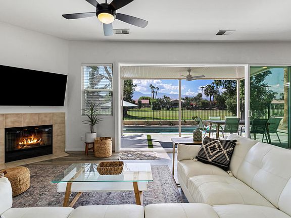 Exceptional opportunity to own a successful short-term rental in the highly desirable gated golf community of Indian Palms Country Club grossing $120,000K a year with 177 five star reviews. This turnkey furnished 4BD, 3BA home, including a private casita, offers strong rental history and consistent income potential. A new panoramic glass slider opens to a stunning outdoor living space featuring a newer modern saltwater pool and spa, ideal for guests and entertaining. Situated on the golf course with unobstructed mountain views, this property perfectly combines resort-style living and investment value. Enjoy access to community amenities including golf, tennis, fitness center, and clubhouse dining--all just minutes from the Empire Polo Grounds, home of Coachella and Stagecoach.