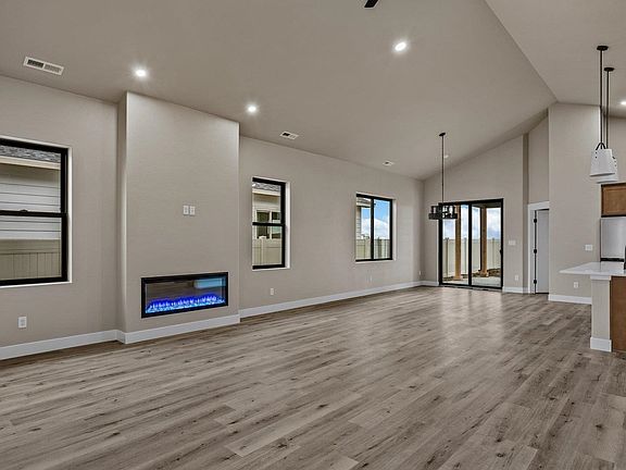Discover the newest premier subdivision in Northwest Grand Junction, where award-winning Builder, TreyTyn Homes, presents a beautifully designed and highly functional ranch-style home with quality finishes throughout. As you enter, a grand covered entryway leads into an inviting foyer, with a conveniently situated fourth bedroom or office tucked near the front for easy access and privacy. The heart of the home opens into a stunning living, dining, and kitchen area, crowned with cathedral ceilings and highlighted by an electric fireplace, enhancing both ambiance and grandeur. The open-concept layout seamlessly unites these spaces, making it perfect for entertaining and family gatherings. The chef-quality kitchen boasts a large island for meal prep and casual dining, premium cabinetry, quartz countertops, and a full stainless steel appliance package, including an elevated gas range and refrigerator. The primary suite, located on the opposite end for optimal privacy, features tray ceilings for added architectural appeal, an en-suite bath with dual vanities atop quartz-topped cabinetry, a walk-in shower with custom tile accents, a private lavatory room, and an oversized walk-in closet. Two additional bedrooms are thoughtfully placed nearby, along with a full guest bathroom that mirrors the home’s luxurious finishes, complete with a tub/shower combo with tile surround. Outside, the expansive backyard features an oversized concrete covered patio, ideal for enjoying Grand Valley’s beautiful scenery and climate. The property includes 10 feet of RV parking on the north side, while the builder will install full perimeter tan vinyl fencing and front xeriscape landscaping, adding both curb appeal and value!