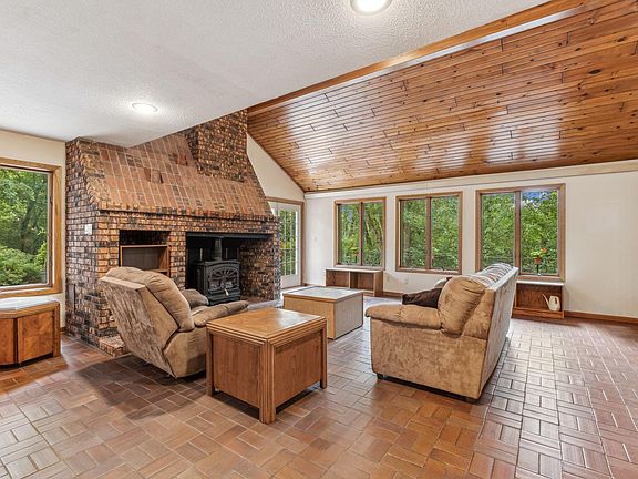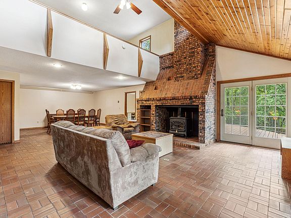 Custom built energy efficient earth home on south facing slope of private wooded, 4 acres. Extensive deck areas to with private views. Sunroom/solarium to enjoy your morning coffee. Open floor plan: high ceiling great room with massive brick surround gas fireplace stove. Flex room could be converted to main floor bedroom. Large open dining area for entertaining. Three large bedroom plus loft on upper level. Supplement available to explain the many energy efficient, heating and cooling aspects of this home. Carpet allowance available.