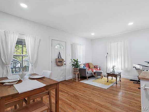 Are you looking for the perfect Location and Value all in one home? Welcome to this amazing starter home nestled in the highly sought-after Webster Groves School District! Perfectly situated just west of South Brentwood Blvd, you’ll love being close to parks, shopping, restaurants, and easy highway access — offering both convenience and a neighborhood feel. Step onto the inviting covered front porch, ideal for morning coffee or relaxing evenings. Inside, you’ll find a warm, cozy living area with hardwood floors and a flexible layout that easily accommodates a dining space. The bright kitchen flows seamlessly into a bonus area — perfect for a home office or hobby space — leading to a mudroom with convenient walk-out access to the level backyard and a spacious asphalt parking area. The cozy bedroom features a large walk-in closet, while the full bath showcases beautiful custom tilework. The unfinished lower level with a walkout offers a half bath and flexible space ready to be transformed into a rec room, home gym, or extra storage. Don’t miss your chance to own a piece of Webster charm — this rare gem is ready for you to make it your own!