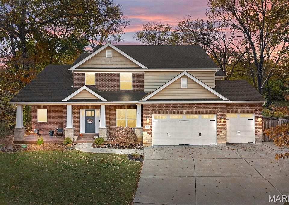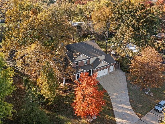 Welcome to this stunning 1.5-story in Kirkwood's Barrett Brae community! With 3,700+ sq. ft. of living space, this home is full of luxurious details and thoughtfully designed gathering areas both inside and out. You'll love the curb appeal, with a 3-car garage, large covered porch, and brick and stone accents. The 2-story foyer opens to a beautiful wood staircase w/wrought iron spindles, and the beautiful dining room w/tray ceiling, crown molding, and gleaming hardwood floors that continue throughout. The open layout is perfect for entertaining! A two-story wall of windows fills the living room with natural light and showcases the stone fireplace surrounded by built-in bookcases and the catwalk above. A breakfast room with a bay window leads to the showstopper kitchen, featuring granite counters, stone tile backsplash, top-of-the-line stainless steel appliances, stylish lighting, custom cabinetry with glass-fronts and a wine rack. A half bath and large laundry room w/utility sink completes the space. The main-floor primary suite is a retreat with a bay window and tray ceiling, dual walk-in closets w/organization systems, and a spa-like bathroom w/corner tub, dual sink vanity, and tile flooring. Upstairs, the loft area creates a relaxing family space. You'll have another bedroom suite, plus two more bedrooms and a full bathroom. The lower level is framed and ready for your finishing touches, with plans approved by the city of Kirkwood. Enjoy the fall weather around the outdoor fireplace. You'll love the pergola, playground, and private, fenced backyard, shaded by trees. In a great location, just moments from Greenbriar Hills Country Club, I-270, and all of the restaurants, parks, and shopping that Kirkwood has to offer, this home is one you won't want to miss!