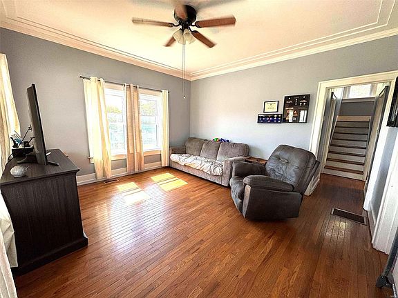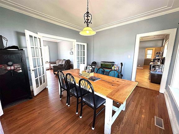 This stately two-story brick home seamlessly combines timeless charm with modern sophistication. The recently updated gourmet kitchen boasts granite countertops, a sleek glass block backsplash, premium Samsung stainless steel appliances—including a 5-burner range—ceramic tile flooring, and ample lighting. A thoughtfully designed butler's pantry with a sink adds both convenience and elegance. The adjacent dining room, adorned with graceful French doors and rich hardwood floors, flows effortlessly into the expansive living room, perfect for entertaining. The main floor also features a cozy bedroom and a beautifully renovated bathroom with a stylish tiled shower. Upstairs, you'll find three generously sized bedrooms, the hallway outfitted with built-in cabinets for all your storage needs. This home is the ideal blend of historic character and modern-day comfort.