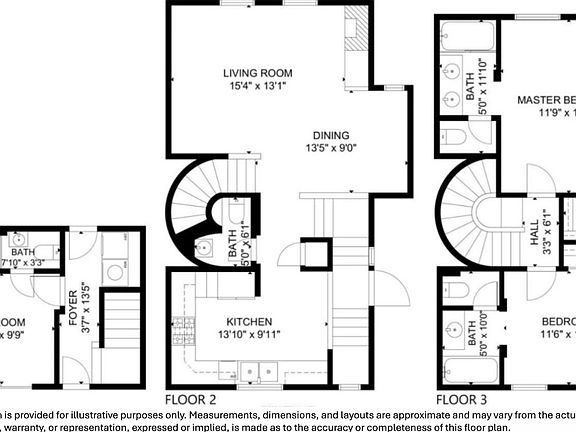 Spacious open floor plan with 3 bedrooms and 3.5 bathrooms.