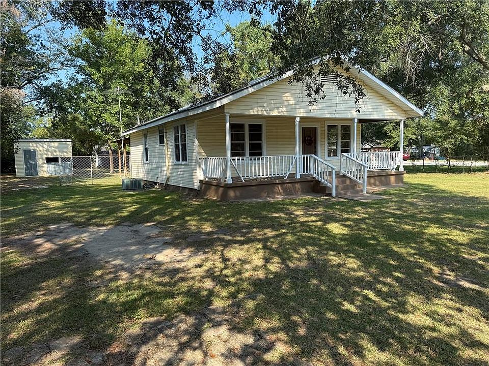 Charming 2 bedroom 1 bath cottage in the heart of Saraland. Freshly painted interior with hardwood floors flowing through the living room, dining area and kitchen. Both bedrooms feature ceramic tile that resembles hardwood, while the laundry room has traditional ceramic tile. The open floor plan creates a warm inviting feel. The kitchen is complete with granite countertops, refrigerator, dishwasher (1 year old) and gas range - all to remain. Bathroom has been recently updated including new flooring. Relax on the cozy front porch, perfect for adding a swing and enjoying your morning coffee. The fenced backyard is spacious with a large covered patio, ideal for entertaining. A workshop with storage for outdoor equipment adds extra convenience. Gas hot water heater is approx. 5 years old. The seller added extra insulation approx. 3 years ago. For peace of mind, the seller is including a home warranty for the buyer. Call your favorite realtor to go see this home before it is gone!
