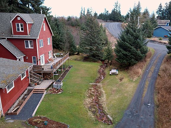 Beautiful and unique Kodiak home with access to Island Lake! This property features a big shop, greenhouse, chicken coop, additional shed, a tree house, and a bonus room to suit your needs. Enjoy a walk on the Island Lake Creek Trail leading down to Mill Bay Beach, or relax on the spacious deck with your favorite warm drink! Schedule a showing to visit this one of a kind Kodiak home!
