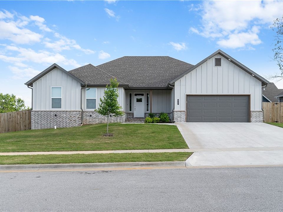 Gorgeous 2024 Built Home in Wakefield Park Community! Completely move in ready! Amazing open layout and quality features throughout plus ALL APPLIANCES INCLUDED. Enter into the bright and spacious living room w/large windows, vaulted ceilings & beautiful fireplace. Kitchen has large island for entertaining, abundant cabinet space, gas cooktop, pantry & more! Great sized dining room off kitchen. Primary suite features large WIC and attached bath with beautiful tiled shower and spacious double vanity. 3 guest bedrooms and 2 guest bathrooms provide ample space. Covered patio provides great space for outdoor living and enjoying your fully fenced yard. LVP flooring throughout whole home, Nest Thermostat. 2 Car garage. Great location with easy access to Fayetteville and University of Arkansas. Close to parks and downtown Prairie Grove. Welcome Home!