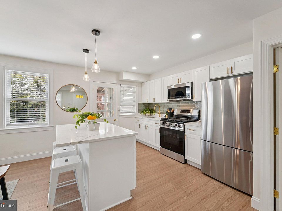 Welcome to this Beautifully Updated 3-Bedroom, 2-Bathroom home in Baltimore City’s Edmondson neighborhood! Thoughtfully Redesigned from top to bottom, this property features Modern Updates and Stylish Finishes throughout. Step inside to find Luxury Vinyl Plank Flooring, a striking Accent Wall, and an open concept Layout. The kitchen is a true highlight with White Shaker Cabinets, Gold Hardware, Brand-New Stainless Steel Appliances, and Modern Finishes—perfect for Everyday Living or Entertaining. Both bathrooms have been updated with Contemporary Design. Finished basement with walkout gives additional space to entertain or just relax. Stay comfortable year-round with Forced Air Heating and Cooling in Every Room. Outside, relax or host gatherings on your Brand-New Deck. On street parking or private parking in the backyard. This Move-In-Ready Home offers the perfect blend of Style, Comfort, and Convenience in the heart of Baltimore City.