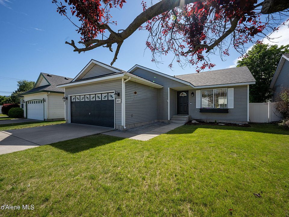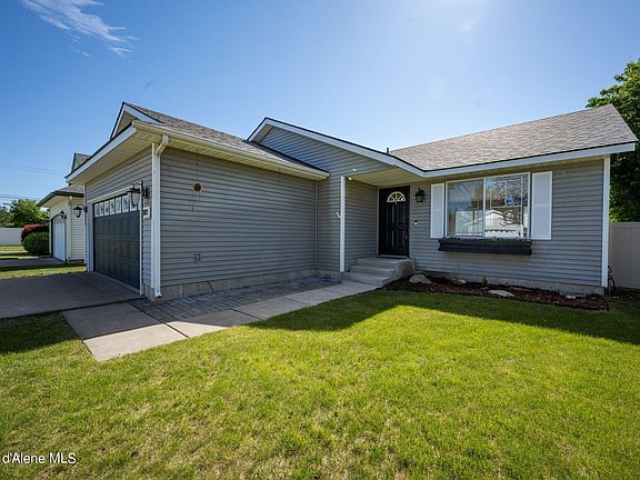 Offering the versatile space you need in the heart of Post Falls. This inviting home welcomes you with vaulted ceilings and laminate flooring. The open-concept kitchen, dining, and living area are perfect for entertaining. The primary bedroom on the main floor features a spacious walk-in closet and a step-in shower. The finished basement adds additional living space and bedrooms, A large laundry/utility room, and an oversized family room. Located in the well-maintained Greensferry landings, residents enjoy access to the clubhouse connected to a preschool and the well-maintained green space throughout the neighborhood. Freshly painted and move-in ready, this home offers quick access to I-90, delicious eateries, essential shopping, and hospitals.