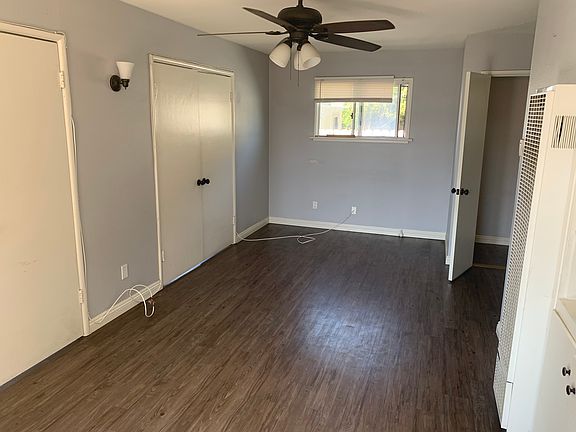 Back house of a duplex. Two bedroom & one bath. No AC & wall unit heater. Living room & Kitchen. Absolutely. NO PETS. No backyard. Small patio area in front of the unit. Two parking spaces off the alley. No garage. Tenant is responsible for the electricity in the gas. Landlord will pay for the water.