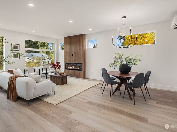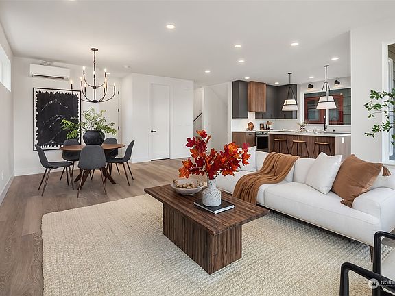 From United Seattle, a modern new home in central Maple Leaf. Main floor hosts two beds and full bath. Upstairs, find your spacious kitchen with Frigidaire Professional appliances & deck conveniently located for BBQing. Living room offers cozy wood-slatted fireplace, powder room, perfect for guests & extensive storage. On the top floor, find your primary suite with walk-in closet & private deck, plus additional bedroom or office and laundry room. Ample mini splits throughout for zoned comfort. EV-ready garage. Conveniently located near 522 and I-5, plus blocks to Maple Leaf Reservoir Park, Macrina Bakery & Cafe, Cloud City Coffee and the amenities along Roosevelt. Near to both Northgate & Roosevelt Link Light Rail, plus UW & Green Lake.