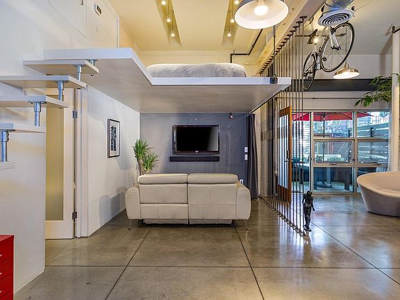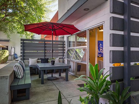 Modern work live artists loft with unique floor plan and dedicated outdoor patio space. Significant natural light from open courtyard space filled with lush greenery and dramatic tree canopy providing both privacy and diffused light. Subtle property design by renowned Long Beach architectural firm responsible for award winning loft conversions in the DTLB area. Washer dryer in unit, sizeable chefs kitchen, polished concrete floors. Unique Floorplan with Turnbuckle feature wall, elevated sleeping loft and Sizeable storage Space above large walk in closet. Full tub shower in nicely equipped restroom. Responsible pet owners ok. See pics.