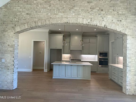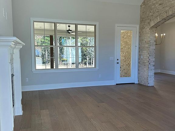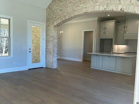 Deep lotAttached to laundry roomLarge master suiteBrick archTrees lining the backLarge kitchen islandVaulted ceiling
