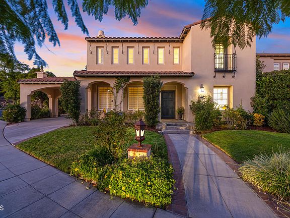 Nestled within La Vina, a private gated community that embodies prestige, sophistication, and timeless beauty, this 5-bedroom + office (or 6th bedroom) residence captures the essence of modern California living, where architectural warmth meets contemporary innovation. Every space evokes serenity, comfort, and connection to nature.Step into this Spanish Revival masterpiece, where a soaring two-story foyer and sparkling crystal chandelier set the tone for the beautifully renewed interior, warmed by a floor-to-ceiling fireplace and bathed in natural light from an abundance of windows.French doors open to the interior courtyard, a sun-filled sanctuary that blurs the line between indoors and out. Multiple patios, garden spaces, and open-air seating areas invite al-fresco dining, play, and relaxation, perfect for dinner parties or weekend fun under the California sky.An open yet defined floor plan welcomes you inside. The elegant living room and formal dining room provide distinct spaces for gathering, while the inviting family room opens directly to the chef's kitchen and breakfast nook, creating a seamless flow for everyday living and entertaining. The kitchen impresses with premium stone countertops, designer cabinetry, stainless-steel appliances, and a generous prep island ideal for both casual dining and culinary creativity.The newly re-envisioned primary suite offers a true retreat with spa-inspired luxury: a freestanding soaking tub, dual walk-in shower, exquisite tilework, and an oversized walk-in closet. Additional bedrooms provide versatility for family, guests, or a home office.Outdoors, tranquility continues with a romantic courtyard fireplace, a soothing fountain, and lush landscaping designed for privacy. A porte-cochere adds architectural charm and functional elegance, and multiple entertaining areas make this home ideal for gatherings large or small.Fully paid-off Tesla solar panels deliver eco-conscious living and long-term savings, complemented by hardwood floors throughout, recessed LED lighting, and a private setting on a peaceful cul-de-sac.Located moments from scenic hiking trails, vibrant parks, and the charm of nearby Pasadena, this home embodies the perfect balance of sophistication, comfort, and calm--a true showcase of refined California living.Truly a must see!