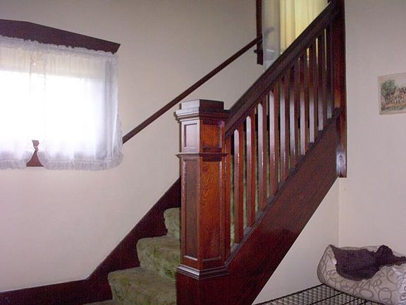 LARGE VINYL SIDED HOME WITH MANY PRESERVED ORIGINAL FEATURES. LR w/stone firepl(gas) leads to the newly renovated sun room thru Beveled glass French Doors and thru another set of French Doors to the Formal Din. Room, which features several sun catching leaded windows, window seat & 3 new vinyl windows. Eat in Kitchen with good wood cupboards, a pantry and Full Bath on 1st Floor. UPSTAIRS are 3 bedrooms & closets PLUS an extra BR without a closet, full bath & Lg. in hall wall storage. Hardwood floors throughout. Walk up all floored attic that could be finished off or used just for storage. Front & rear porches for relaxation. 2 car detached garage. Large rear yard for your pleasures. Full high basement with commode, sink & shower. NEW WATERLINE FROM ROAD TO HOUSE INSTALLED 6/6/17. Workshop and storage areas in Basement. Must see inside to enjoy. Complete electrical upgrade including a new 200 amp service, October, 2017. Complete designer remodel of second floor bathroom, December, 2017. New certal air conditioning August, 2018. New roof, new gutters, 4 new exterior doors, 7 new windows, new basement stairs. New glass block windows with vents in basement. Every wall and ceiling patched and painted. New floor, toilet, sink, light, medicine cabinet, ceiling, exhaust vent, and linen closet in first floor bathroom. Closet remodel. New decking and stairs on front porch. Completely new back porch. October, 2020.
