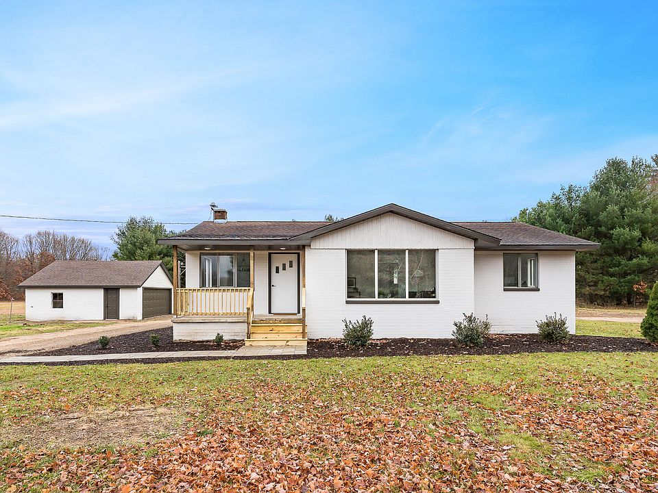 Beautifully remodeled home on 13 acres just a few miles from Allegan. Updated kitchen with new appliances, updated bathroom, refinished hardwood floors, new paint, new lighting, new fixtures, newly-finished basement, new landscaping, new water heater, and the list goes on. The 13-acres is a tranquil mix of wooded and open space and offers lots of opportunities for animals, gardening, a large outbuilding, and much more. Good-sized detached 2-car garage with new door and opener. You will be delighted.