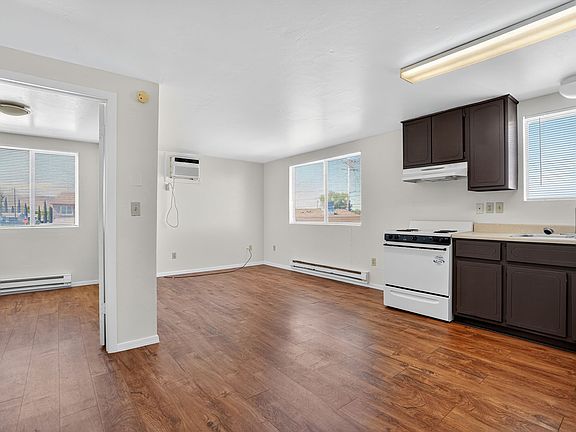 Spacious kitchen with a dining area, and laminate wood flooring, window AC, and off street parking. This building is directly across the street from a dog park, Mountain View Elementary School, and Mountain Valley Splash (featuring a 6 lane lap swimming pool, a 75' spiral slide, a splash pad, and concession stand), Don't delay as this will lease fast!