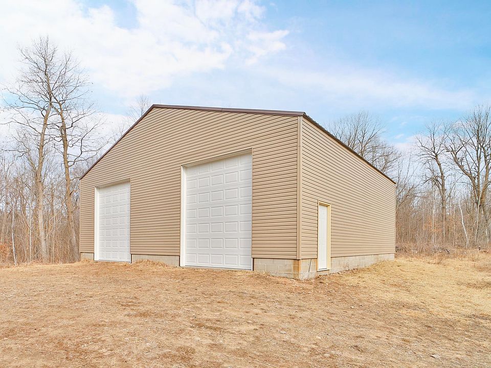 Don't miss this large remodeled garage on 9.6 wooded acres located within walking distance to South Long Lake. Property has a septic and garage has new 12' garage doors, new vinyl siding, metal roof and would make a fabulous building site. Septic system in and is in compliance. If you are looking at building or need storage for your toys, look no further. Set up a showing today.