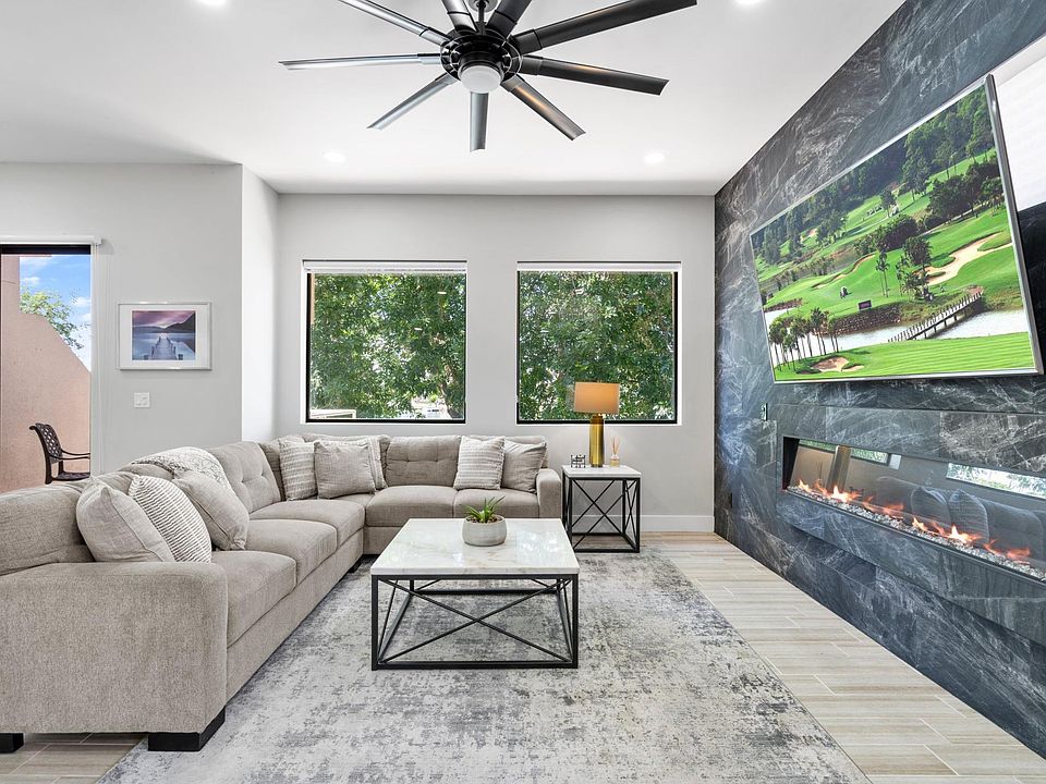 FULLY FURNISHED AND MOVE IN READY! Fully remodeled top of the line and a very unique property. Wake up and enjoy Gorgeous Views of Lake Marguerite on your own private balcony. Walk the miles and miles of McCormick Ranch Multi Purpose Bike and Walking Path. Dine to sunsets reflecting off the Lake. The perfect heart of Scottsdale location for you to enjoy your stay. Walk to morning coffee, evening cocktails with a variety of fine and casual dining in walking distance. Bright Open Floor Plan with the Kitchen Open to the dining and living room. Spacious 3-bed 2-bath with office. Master with separate Tub and walk-in shower and large walk-in closet.Stainless appliances in kitchen. Marble Backsplash. Upgraded light-fixtures/fans.