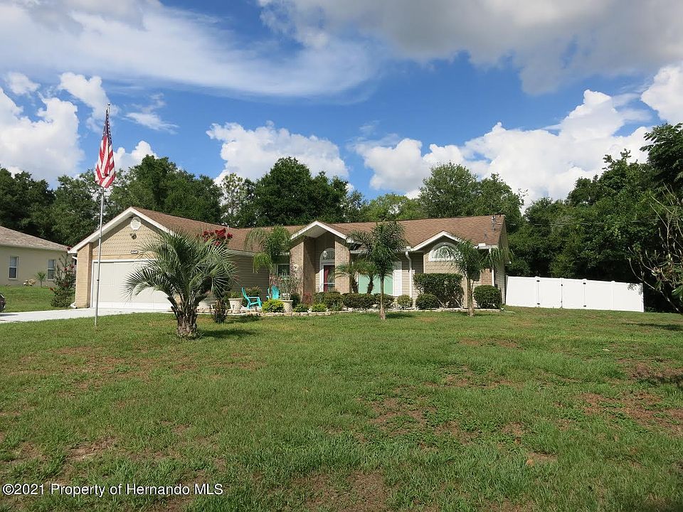 This charming 3/2/2 1540 sq ft home home is on a beautifully landscaped 1/2 acres in Lindsey Acres with mature landscaping and spacious fenced backyard. As you enter the home through the front door with you are welcomed into the family room with tall ceilings that allow natural light to flow through the entire living area. With an open floor plan, the family/kitchen/dining area will allow the family to love the spacious kitchen which opens into the living area and features granite, stainless steel appliances. The master suite has a walk-in closet, a walk-in shower, double sink vanity with lots of storage. This split floor plan home has bedrooms 2 and 3 are near the bathroom and shower that were updated in 2020. In the backyard you will find a screened in porch with stone pavers and a fenced in backyard. Plenty of room for a pool. All the windows in this home were replaced in 2018, new A/C unit in 2019 and a newer septic drain field. NO HOA OR CDD! Conveniently located to shopping, restaurants and the greater Tampa Bay area.