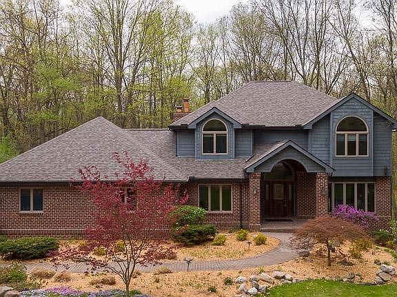 Nestled on a wooded walk-out site tucked away in Webster Hills is one of Christian Tennant's quality creations. Situated just 20 minutes to Ann Arbor's north side and only 5 minutes to Hudson Mills Metro Park featuring the Border to Border trail to Dexter. Shelled in brick and cedar this remarkable home is loaded with unique features including custom milled maple trim throughout, Andersen windows, two furnaces (one new in 2014), two hot water heaters and a dumbwaiter. The spacious kitchen boasts maple cabinetry, Corian surfaces, tiled back splash, and light-filled eating space. Fabulous 3 season porch overlooks the beautiful cedar deck system and backyard where the deer & turkeys roam free. The outbuilding makes a perfect workshop, studio or RV storage with its 10ft door. HRV air filtration exchanges the in-home air 6x per 24 hours. Don't miss the video tour!