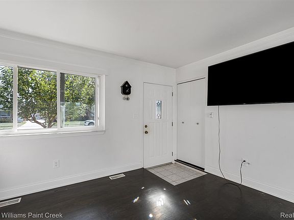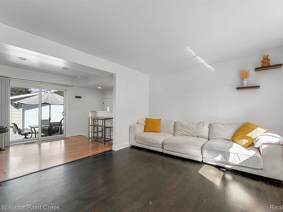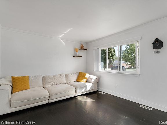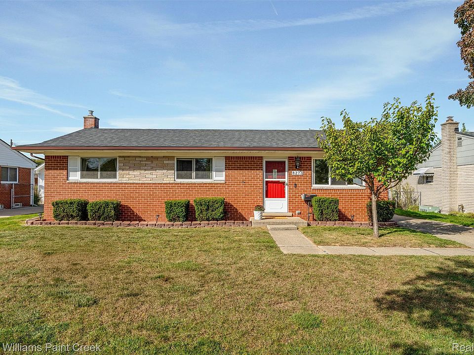 This welcoming ranch-style home features classic brick curb appeal with paver garden beds and neatly trimmed landscaping. Step inside to discover an open floor plan with central air conditioning and a comfortable flow throughout. The sage green kitchen is a standout, offering plenty of charm and a sliding doorwall that leads to the back patio.