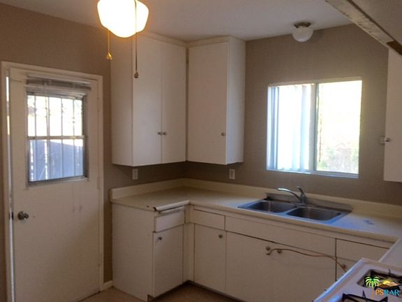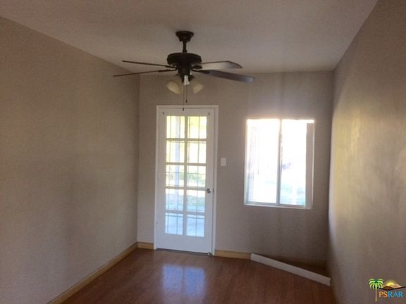 Solid home in established neighborhood in central Indio. This 3 bedroom 1 bath home has hardwood flooring through out,, french door in the dining area, eat in kitchen with nice size rear yard with large covered patio area. Attached 1 car garage with laundry, off street parking, level lot with lots of potential. Very close to local schools.