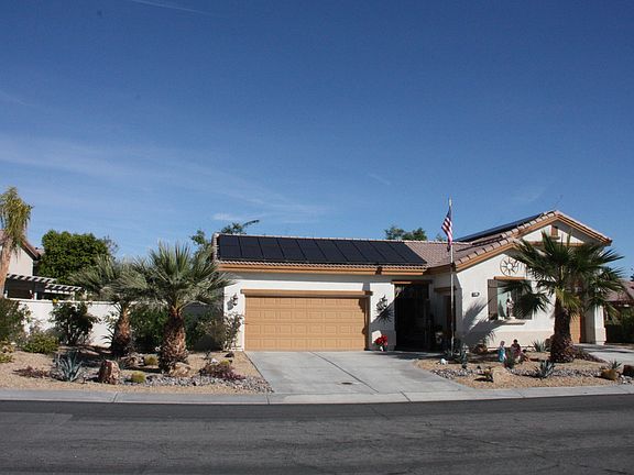 Fantastic property in Indian Palms golf resort! 50' x 14' RV garage with all hookups, solar heating and electricity, pool, spa, outdoor shower, built-in BBQ. Great view. All new upgraded appliances. New flooring.