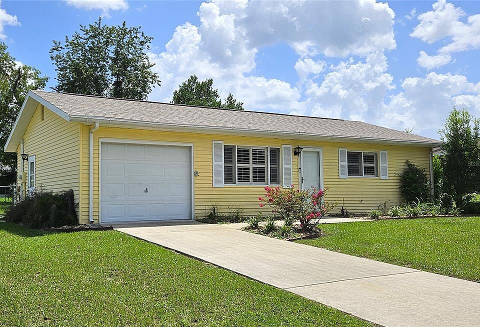 Two-bedroom, one-bathroom and a one-car garage with a side entry door. Plantation shutters, a Florida room, tile flooring, carpeted bedrooms, and an updated bathroom. Fully fenced yard with two gates. AC 2015, New roof 2025. Located in a safe and secure, 24-hour gated 55+ community with a low management fee. Amenities, including planned social events, a library, billiards, a card room, an arts and crafts room, a community pool, and a tennis court. The low management fee covers trash removal, access to the 24-hour guarded gate, maintenance of common areas, and use of the clubhouse facilities. This property is conveniently located in Southwest Ocala, just a short distance from shopping, restaurants, VA hospitals, and other healthcare facilities. Golf carts are permitted, and RV/boat storage may be available for a modest monthly fee. The property is just minutes from I-75, one hour from Gainesville, and one and a half hours from Disney.