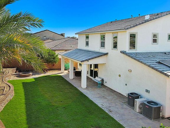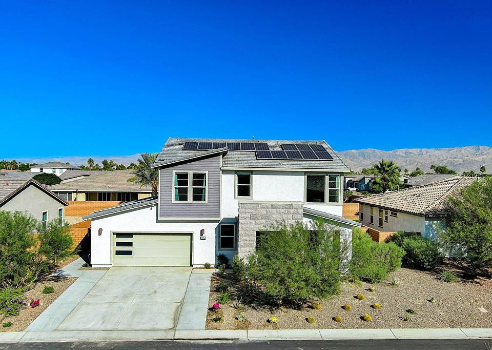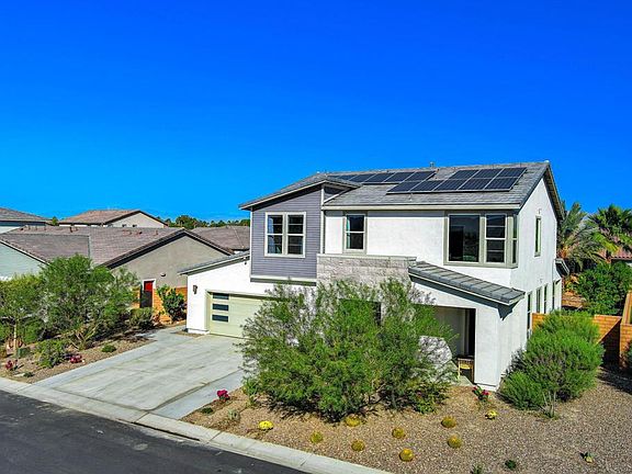 Welcome to this highly upgraded home in the Barcelona community of Indio. With five bedrooms, three baths and more than 2600 square feet, this property brings together modern comfort and an easy desert lifestyle.The entry opens to a bright living space with large format tile floors and a smooth flow into the great room. The kitchen features upgraded cabinetry, soft close drawers, quartz counters, glass door uppers, roll out shelves and stainless steel appliances. It is a warm and inviting space for both daily living and entertaining.Step outside to a backyard designed for relaxing and enjoying desert evenings. The expanded patio and walkways are finished in premium pavers, and the built in gas firepit creates a perfect gathering area beneath mature Medjool date palms.The home also includes major improvements that add long term value. A newer solar system with battery backup provides strong energy savings. A whole home water softening and reverse osmosis system gives you clean, filtered water throughout the house. A wired camera system adds an extra layer of comfort and security.Upstairs you will find spacious bedrooms, a flexible loft and a relaxing primary suite with upgraded finishes and a large walk in closet.The home sits on a quiet street and is just a short distance from the community park, a great bonus for families or anyone who enjoys outdoor space.This property blends comfort, style and thoughtful upgrades throughout. It is move in ready and beautifully maintained.