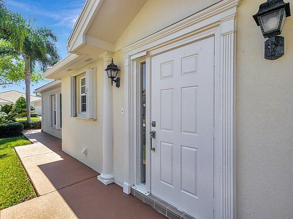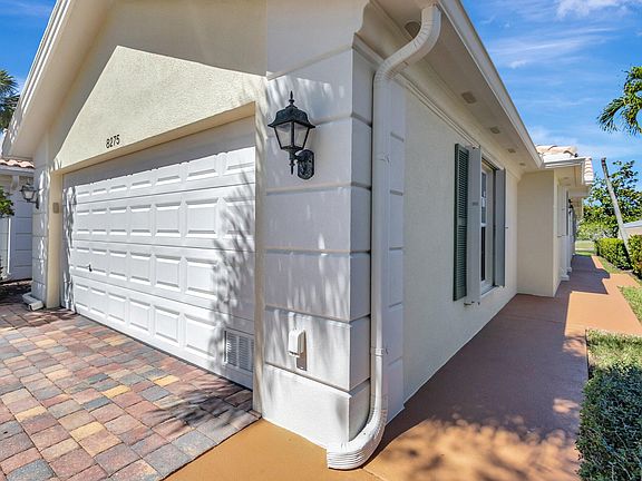 Welcome to this waterfront villa in highly sought-after VillageWalk of Wellington, offering resort-style living! This spacious 2-bedroom, 2-bath, 2-car garage, Capri model offers a wide serene lake view that you can enjoy from the privacy of your screened-in patio. The home has been professionally power washed and cleaned, making it move-in ready for its next owner.Featuring a split bedroom floor-plan, vaulted ceilings, accordion hurricane shutters, central vacuum, walk-in closets, alarm system, and a laundry room with a sink. Additional attic storage with pull-down stairs ensures you have plenty of space for all your needs. The villa also includes brand-new toilets for added convenience.VillageWalk offers a 24/7 manned gate for security, amenities such as a resort-style pool, lap pool, fitness center, tennis and pickleball courts, bocce and basketball courts, playground, hair salon, and pet spa. Enjoy walking, jogging, or biking along the scenic paths that weave throughout the community.