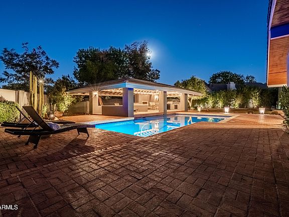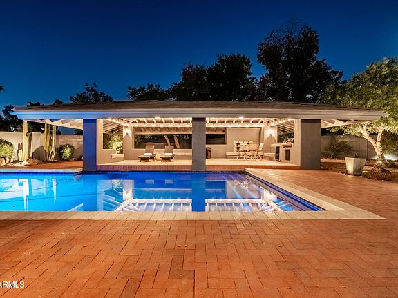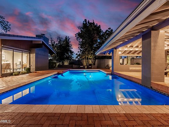 Experience the beauty and craftsmanship of this breathtaking contemporary residence in highly sought-after Carver Ranch Estates in South Tempe. A true showcase of timeless design, this home perfectly blends natural light, warm textures, and modern livability for an atmosphere that feels both elegant and inviting. Step inside to find soaring oak-beamed ceilings, custom built-ins, and walls of glass that flood the home with sunlight and create a seamless connection to the outdoors. The spacious formal living and dining room are ideal for entertaining, while thoughtful details throughout highlight quality and character in every corner. The chef-inspired kitchen is the heart of the home, featuring high-end stainless-steel appliances, a Sub-Zero refrigerator, wine fridge, granite countertops, custom cabinetry, and a walk-in pantry all designed function. The primary suite offers a serene retreat with a private sitting area, fireplace, balcony, and cedar-lined walk-in closet. Generously sized secondary bedrooms provide comfort and flexibility for family or guests, and a private sauna adds a spa-like touch. Step into the resort-style backyard, where a diving pool, covered ramada, built-in BBQ, outdoor fireplace, and refrigerator create the perfect setting for entertaining or relaxing under the Arizona sky. Lush mature landscaping, fruit trees, and a grassy play area complete the oasis, while a beautiful courtyard seating area offers a peaceful spot for morning coffee or evening gatherings. Added conveniences include ample storage, an extra Sub-Zero freezer, and a Tesla charging station. Perfectly situated near schools, shopping, and dining, this extraordinary home combines architectural sophistication, modern comfort, and desert-inspired outdoor living truly a one-of-a-kind home.