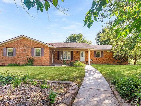 Wanting to live in Newburgh, without an HOA, on nearly a full acre? Situated across 3 lots in a no-outlet, established subdivision, this contemporary brick ranch might be just the one you've been waiting for! Even though it is minutes from all of the amenities, it feels private and relaxed, restoring that balance many buyers are looking for. Set back nearly 75 feet off the road, you and your guests will appreciate sunsets from the covered front porch. As you enter, you're greeted by spacious, open rooms perfect for both entertaining and daily life. The dining area features handsome cherry built-ins and flows seamlessly into both the kitchen and living room. The kitchen has a newer dishwasher, refrigerator, and cooktop as well as a double oven. Plenty of cabinets, some with pull-out shelving, and countertop space here, especially with the peninsula bar. The cozy living room has a wood burning fireplace and a wood beamed ceiling. Additionally, an installed surround sound system is included with the sale! Between this public side of the home and the more private side sits a dedicated laundry room and the washer and dryer are included as well! The 3 spacious bedrooms have lighted closets and laminate flooring. The hall bath offers both a large tile shower and a jetted tub, and is also accessible from the adjoining bedroom. That bedroom comes with a TV, electric fireplace, and built-in shelving in the closet. The attached 2 car garage is ready for projects and has a water line for a refrigerator as well as a half bath! How often do you see that? Perfect for the meticulous hobbyist, home gym, or anyone who just wants a very private bathroom. Out back, you'll find a large concrete patio, lean-to shed for wood storage, and a yard barn as well as an outbuilding with electric. That outbuilding is being sold "as-is" but has potential for a studio, playhouse, or anything else you can dream up. The crawlspace in the home was recently improved with 2 brand-new sump pumps, so you won't have to worry when it rains. While you might want make a few cosmetic enhancements, this home is ready for you to move right in and love where you live!